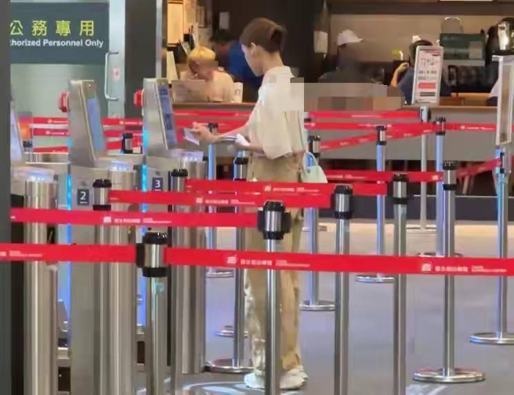 接着何超莲就和助理赶往机场了,助理帮忙推着29岁的红色行李箱,两个人一到机场就直奔报道柜位。可没想到走错了报道区,何超莲四处张望明显有些慌张。