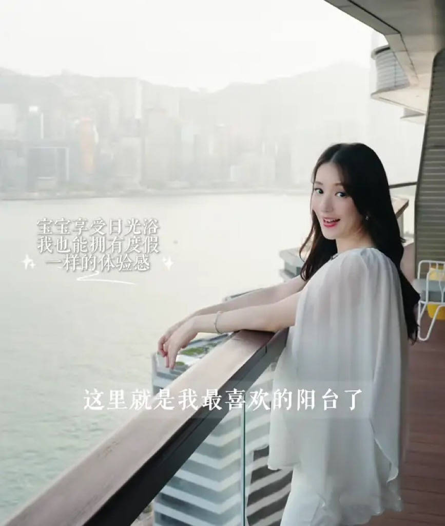 方媛选择的是很豪华的海景房,这里推开门就可以看到美美的海景。在香港注重寸土寸金的地方,很多家庭都挤在五六十平的房子里。