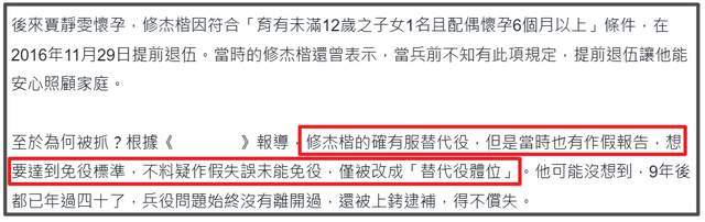 而修杰楷在2016年服了替代役,也符合提前退役资格,如今突然被拘提,经纪人也有些慌乱,先是回应表示正在了解中,紧接着台媒曝出,修杰楷认罪了。