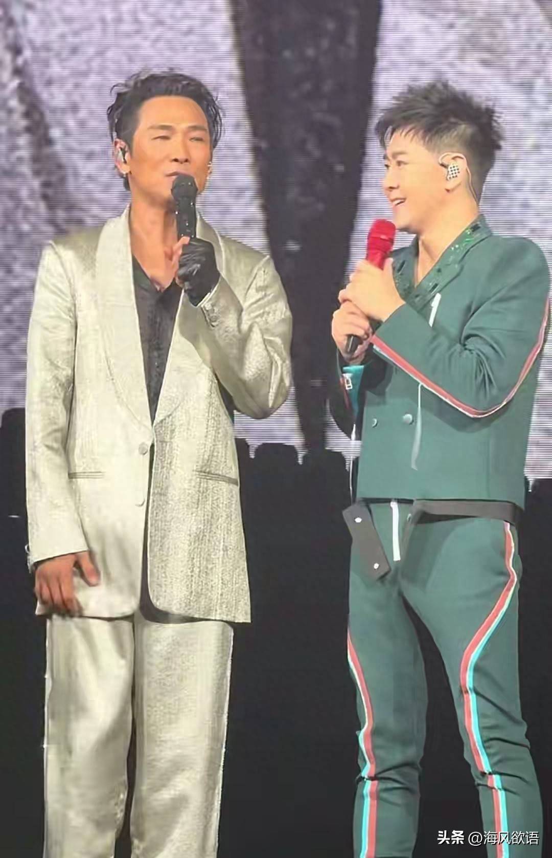 杜德伟香港红磡演唱会直接把惊喜拉满,中场时舞台灯光一转,杜德伟一句“有请我的好朋友”,林志颖就带着标志性的阳光笑从舞台升起,全场尖叫差点掀翻屋顶。
