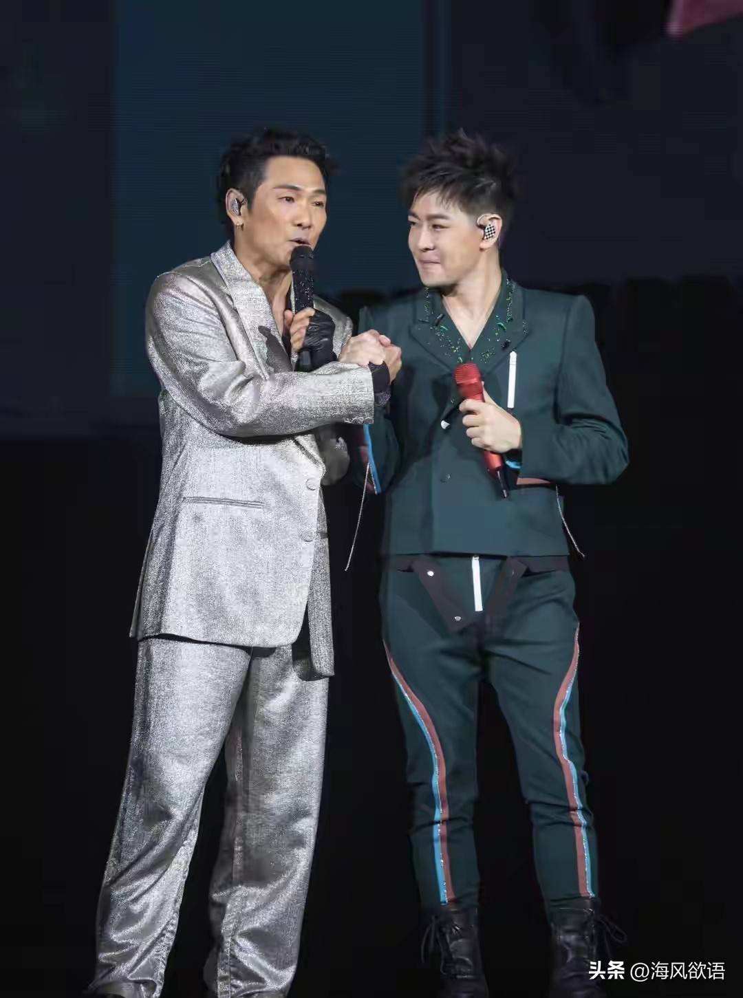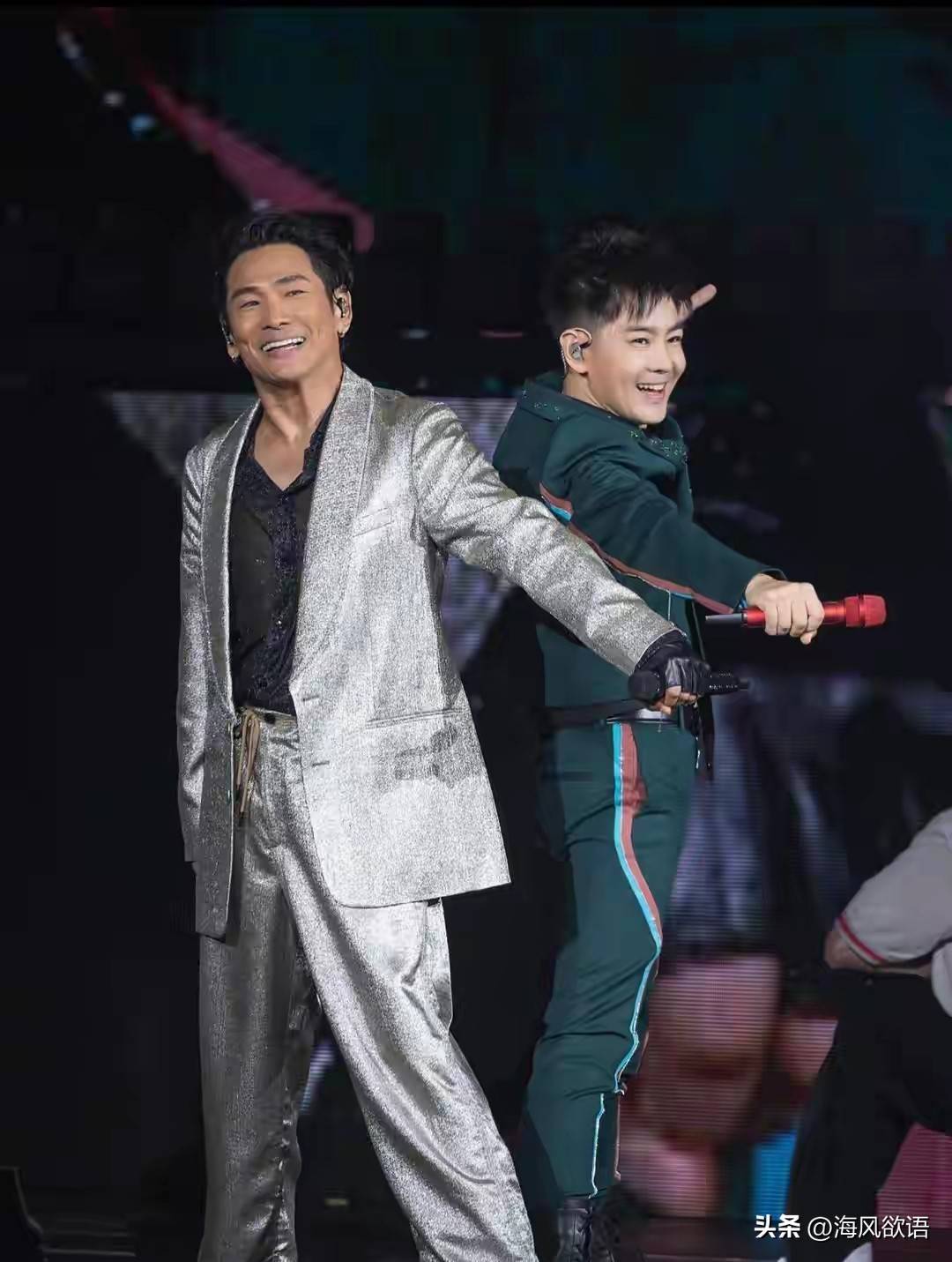 杜德伟香港红磡演唱会直接把惊喜拉满,中场时舞台灯光一转,杜德伟一句“有请我的好朋友”,林志颖就带着标志性的阳光笑从舞台升起,全场尖叫差点掀翻屋顶。图片来自网