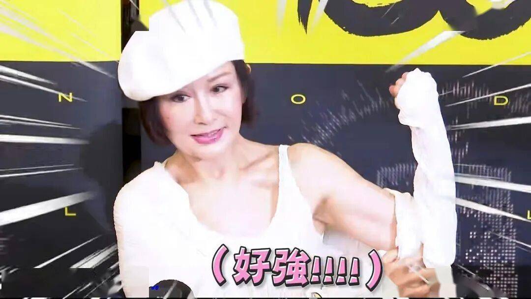 颁奖礼前,潘迎紫接受综艺节目《完全娱乐》的访问,一开场就幽默说:“这次我会露脖子喔!”她当天戴着白色画家帽,穿着白色套装,还特意玩了个“左肩跌膊”的造型,整个人既俏皮又有女人味。她的皮肤状态更是让人服气——脸部几乎没有明显皱纹,除了法令纹稍深,肌肤依然白得发光。她边笑边聊自己的“冻龄秘诀”:“我一直有健身喔!练手臂、举哑铃、做重训,我的二头肌、三头肌都蛮大的。”