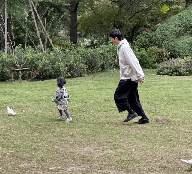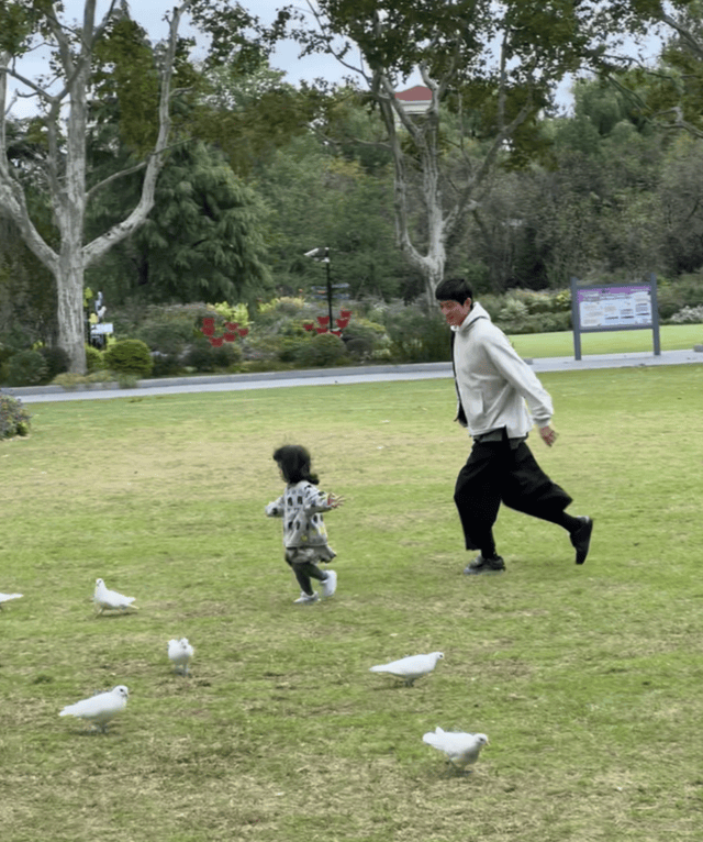 话说回来,和老公金大川一起带女儿到公园玩耍的雎晓雯,她也有帮老公和女儿拍照。雎晓雯镜头下,金大川和女儿在草坪上追逐玩耍,跟在女儿身后跑的金大川视线都没从女儿身上离开过,满是宠溺。