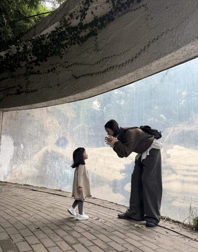 弯腰与女儿互动的雎晓雯,一双大长腿格外抢镜,有粉丝就打趣称看完照片本来想吐槽博主拉腿太厉害,看起来一米八,但一看ID,草率了。