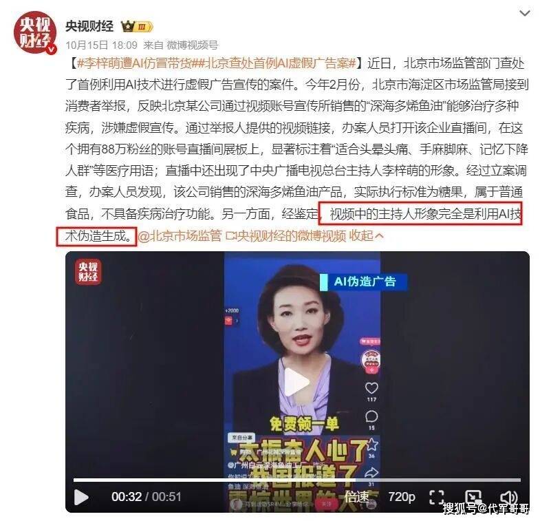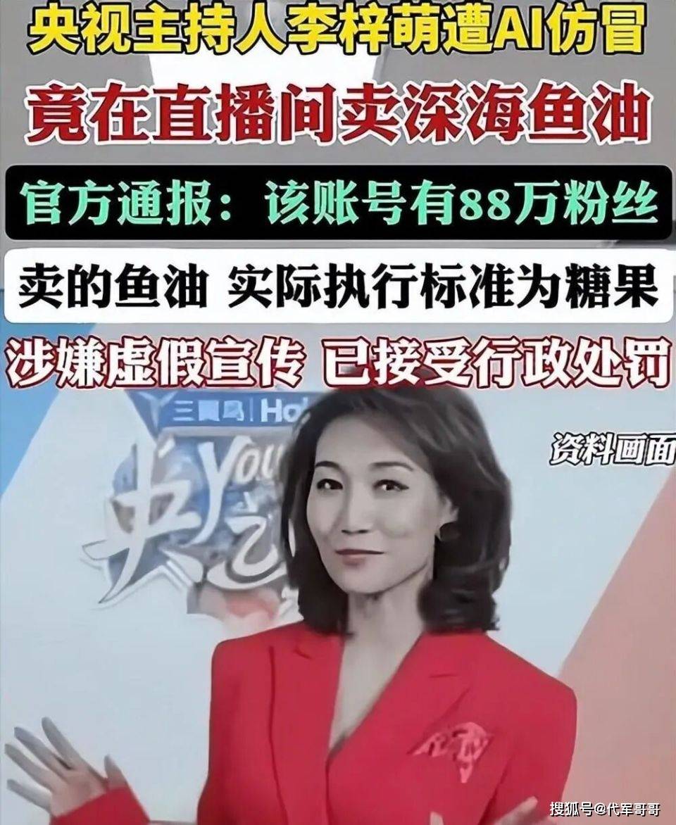 然而,平静的湖面却被一颗突如其来的 “石子” 打破。今年 2 月,一则令人震惊的消息在网络上迅速传开:有人发现,在一个拥有 88 万粉丝的直播间里,出现了李梓萌的身影,她正在卖力地推销一款深海鱼油。画面中的 “李梓萌”,无论是外貌、声音,还是说话时的神态和标志性的播音腔,都与观众平日里在央视荧幕上看到的别无二致,让不少人深信不疑。只见她对着镜头,绘声绘色地描述着这款鱼油的神奇功效:“这款深海多烯鱼油,对头晕头痛、手麻脚麻有着显著的改善效果,还能有效提升记忆力,特别适合中老年人……”