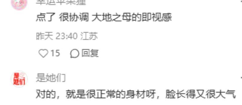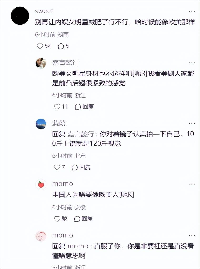 她要么再瘦一点,瘦成骨架子身材,才能达到路人所认为的苗条,要么就是保持现在的体重,不理会网上的声音。