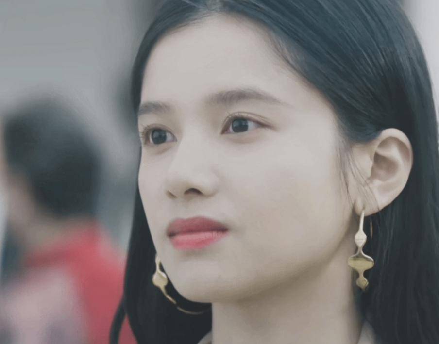 她在剧里很多角度下的脸看着都不小,下巴也不尖,但跟她青春的风格配合的刚刚好,如果她的下巴太尖,反而很刺眼,磨灭了她的青春氛围感。