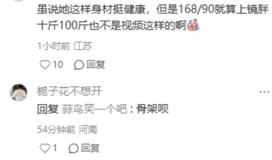 有粉丝为她辩护,称她只有90斤,上镜胖十斤,但路人却认为90斤上镜绝对不会是这样。