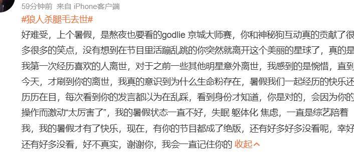 有不少网友猜测他是抑郁去世,因为在九月的直播里,他就屡屡一副疲惫放空的姿态,很快就出事了。