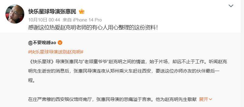 《快乐星球》导演也对他的去世格外惋惜,不顾自己年纪已经老迈,为他九十度鞠躬。