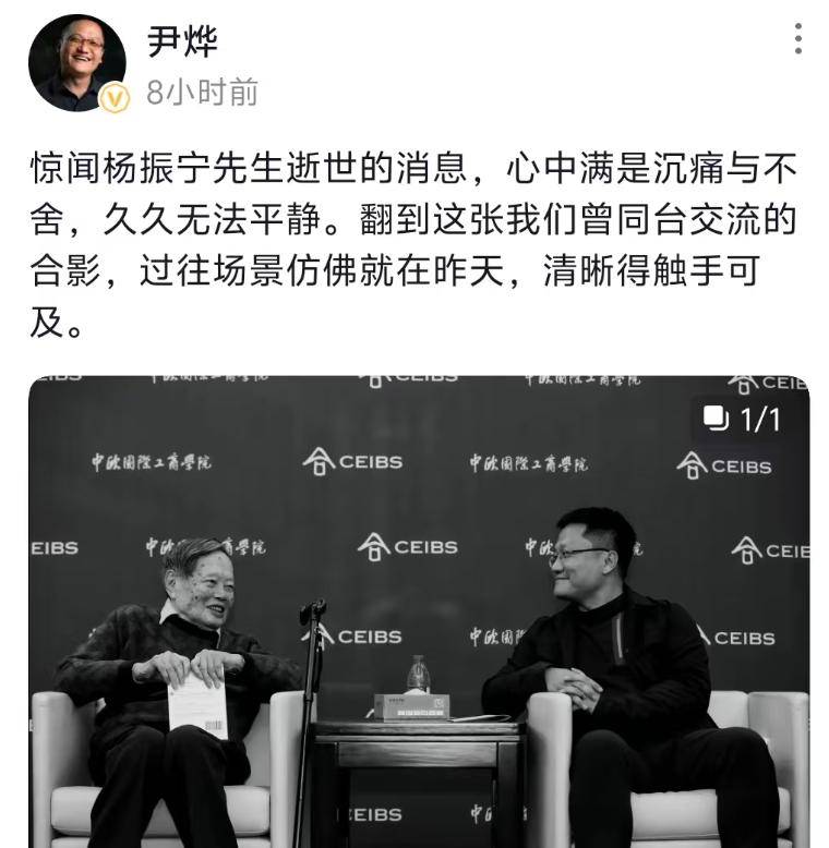 虽然这次娱乐圈的明星们都保持缄默,但很多科技界的大咖都为杨振宁送上了悼念。