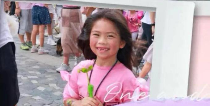 这是何超盈的6岁小女儿荷包蛋,孩子们身穿粉红色的短袖和长裙,还佩戴了粉色的眼镜,面颊红润,实在是太可爱了。
