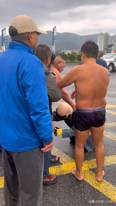 见状,有游客赶紧向周围人求救,他发现不远处有一群穿着泳裤的人们,便立即赶了过去。