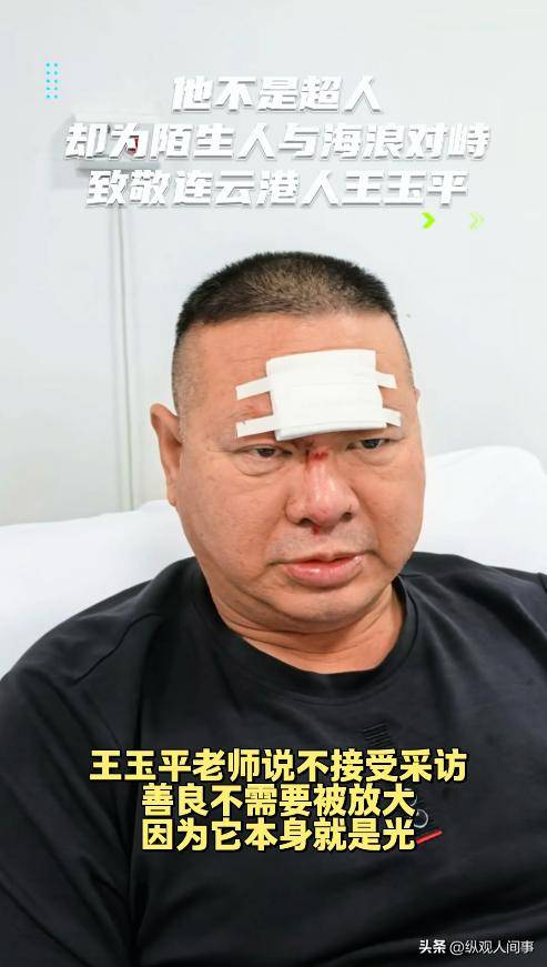 而在上岸后,王玉平也受了重伤,他浑身都是被礁石划烂的伤口,脸上、腿上流着血,还在海里面泡了那么久,不敢想象,他的身体该有多疼。