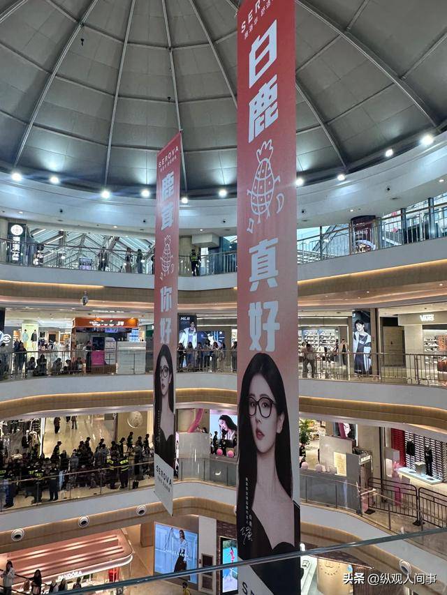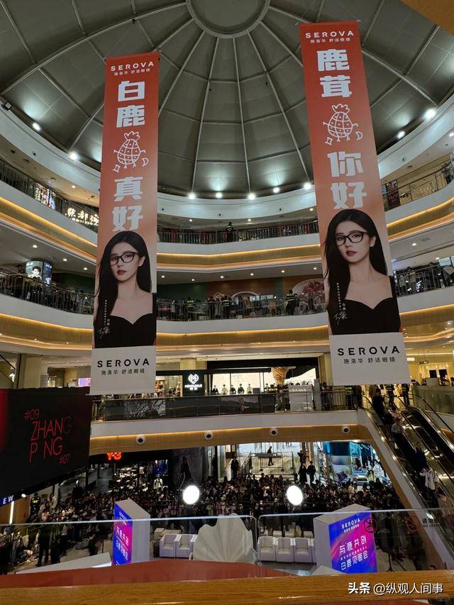 从照片中来看,活动位于一个大型商场内,里面还挂了两个超长的广告条幅,上面印着白鹿的画像。