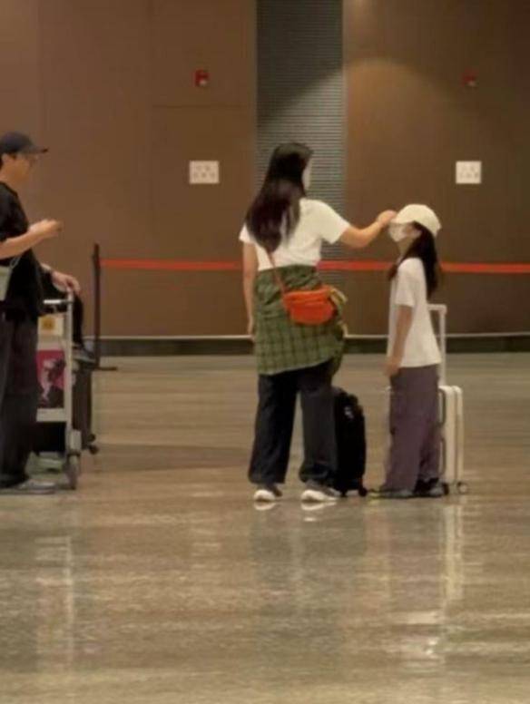 照片里最抢眼的还是她跟她女儿,母女俩站那儿,前面是行李箱,她女儿Summer才9岁,头歪着好像在跟妈妈撒娇,
