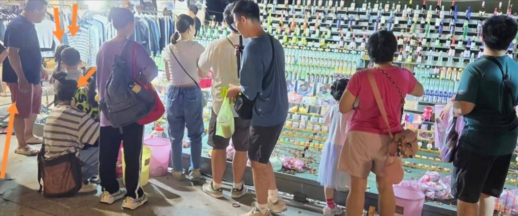 昨天晚上那个夜市,是跟着郭碧婷和孙子孙女一起去的, 他发了视频, 郭碧婷打扮得超简单,丸子头,条纹T恤配牛仔裤, 就蹲在地上看两个小孩玩游戏, 他自己就在旁边站着看, 那种人挤人,特别有烟火气的夜市, 一家人逛逛老街,吃吃东西, 感觉特别真实, 郭碧婷在他镜头里,就是个很普通的妈妈, 自己带孩子,陪爸爸, 哪有那么多豪门的样子,就很接地气,