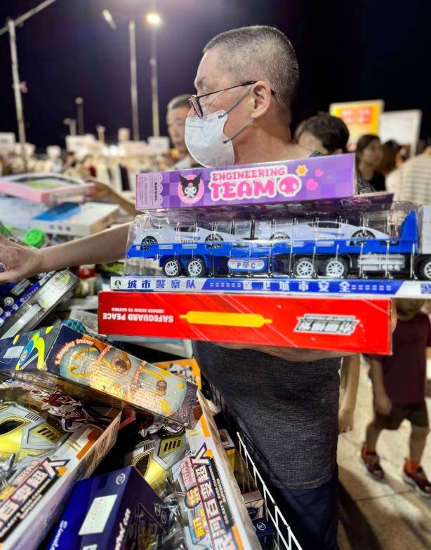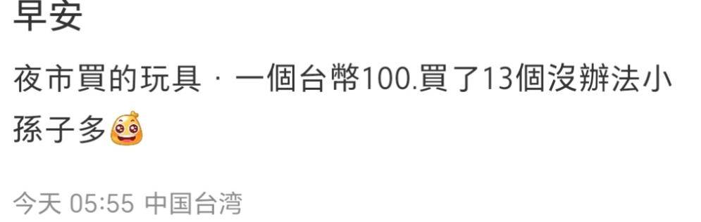 他现在就跟个普通爱分享的外公一样, 今天早上还说,昨天(10月19号)晚上去逛夜市了, 买了13个玩具,一个100台币, 他还自己解释,“没办法,小孙子多”, 哈哈,这话说得,又好笑又觉得好宠啊, 他还晒了那些玩具,小汽车,库洛米,画画板, 都是小孩子喜欢的,