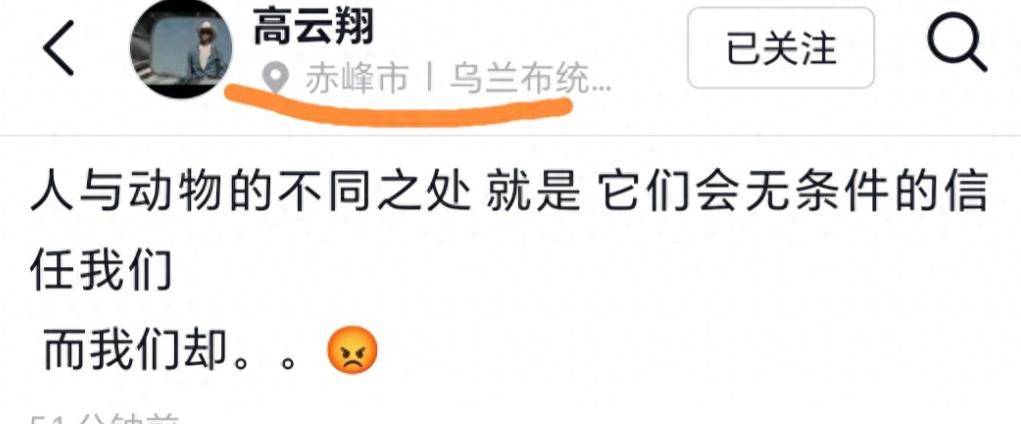 真是搞不懂有些网友,都什么时候了,还天天在人家底下喊“复出”, 这不,高云翔10月19号发了个动态,人在内蒙古,看IP是在赤峰乌兰布统那块大草原, 他就发了张喂鹿的照片,蹲