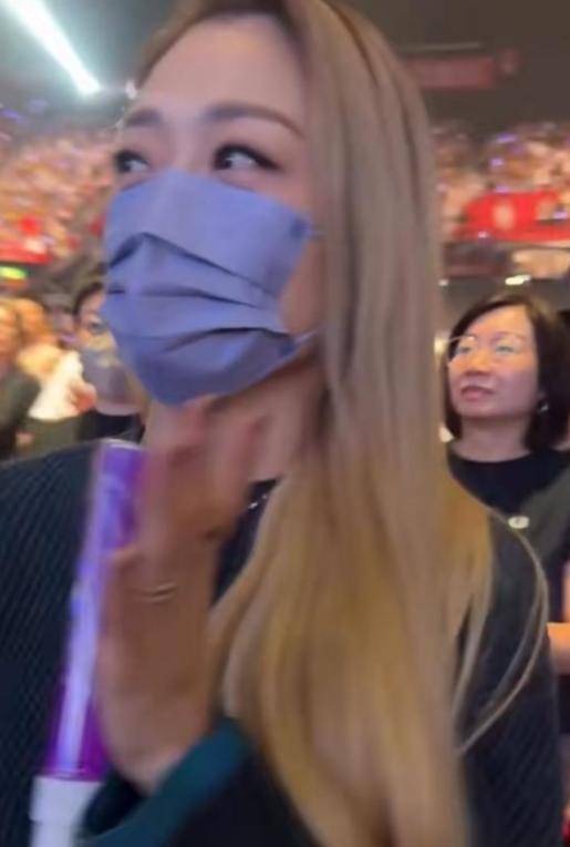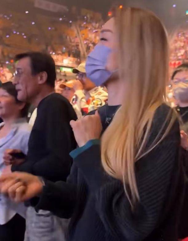 估计是被影帝感染了,容祖儿也拿着应援棒跳得特别起劲,