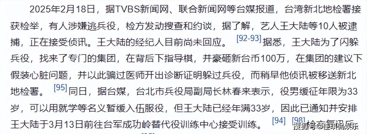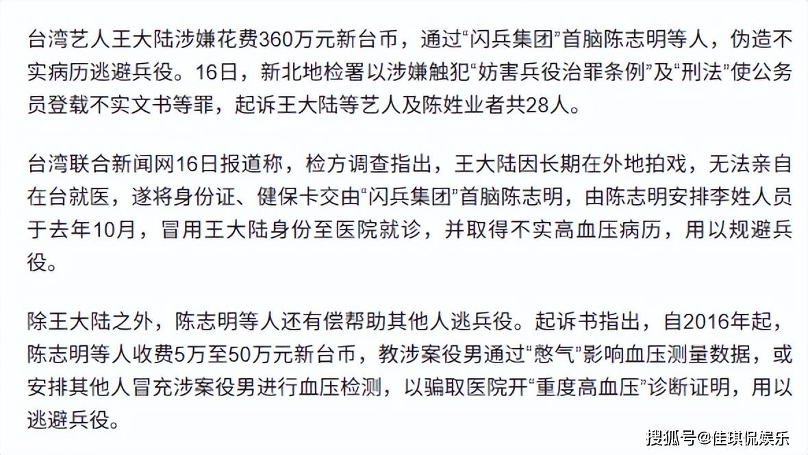 要知道依照台湾规定,所有男性要在一定年限内入伍服役,可王大陆却并没有按照规定履行义务。