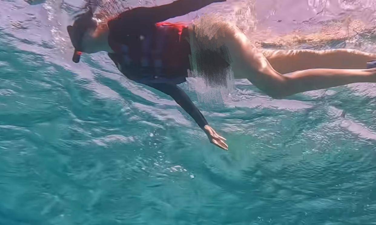 关晓彤在海中潜水的画面也如同一幅美景,纤瘦的身材与修长的四肢在海水的浮力作用下如同“翩翩起舞”,那一双笔直白皙的大长腿格外抢镜,美到让人挪不开眼。