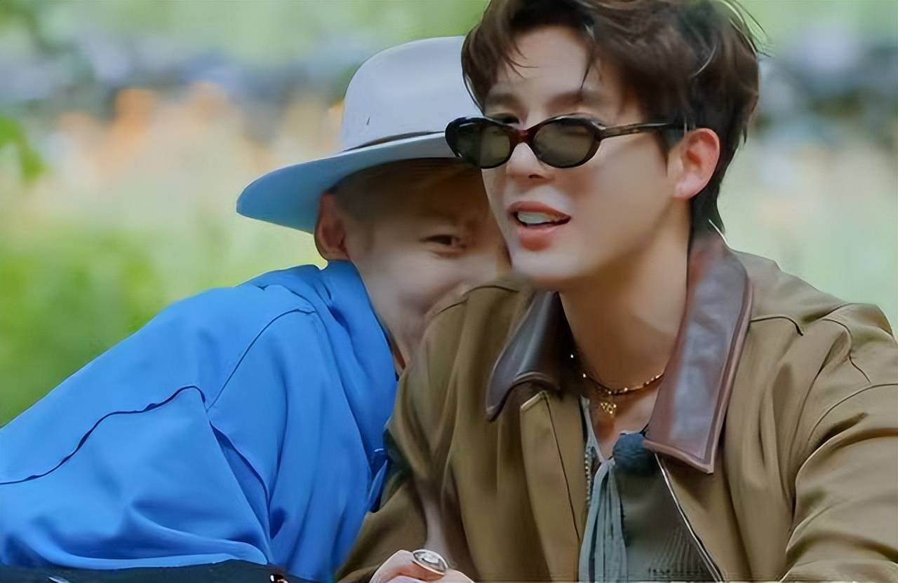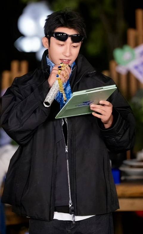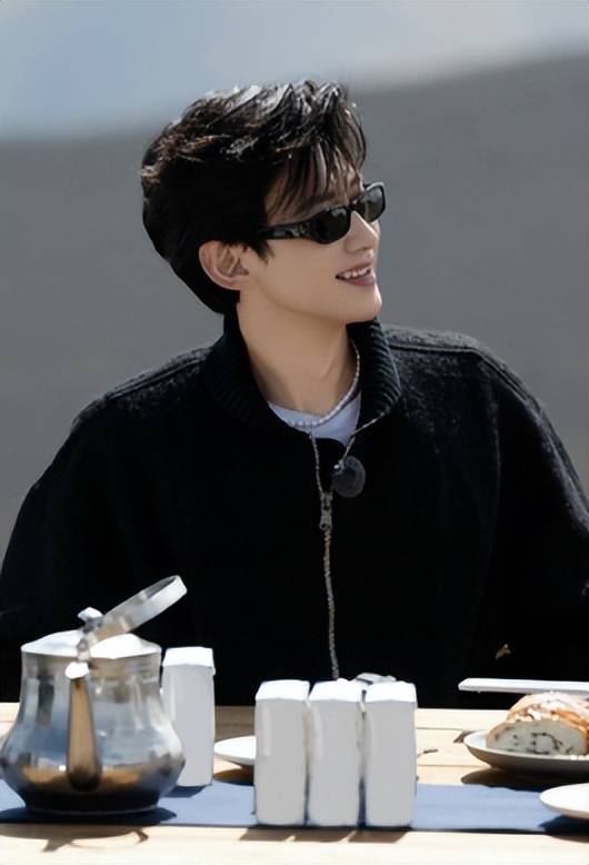 在播放偶像剧片段引发尴尬氛围时,他戴墨镜从容化解尴尬,与其他嘉宾的拘谨形成鲜明对比。