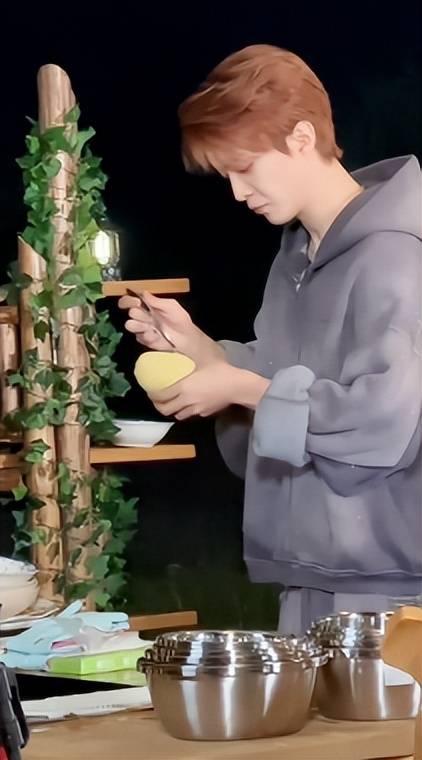 在深夜里,他展现了自己的厨艺,为嘉宾们做了一道丰富的菜。