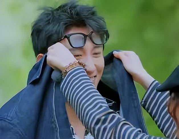 当播放他与王安宇的偶像剧亲密片段时,他并不像其他人一样坦然面对,反而扭扭捏捏地躲在了王安宇的身后。
