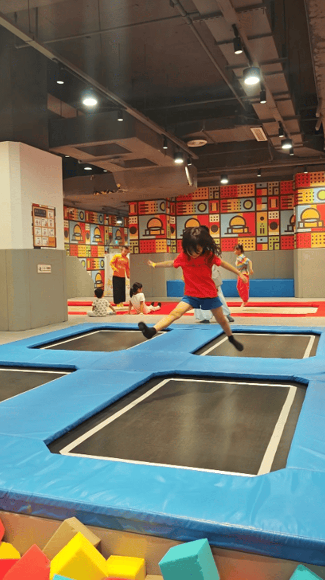 就像网友说的张梓琳和聂磊属于强强联合的一对,那他们的女儿自然差不到哪儿去。张梓琳镜头下,玩着蹦床的两个女儿大长腿格外抢镜,其中,小女儿玩蹦床时还不忘展示一字马,一看就遗传了父母的运动基因。