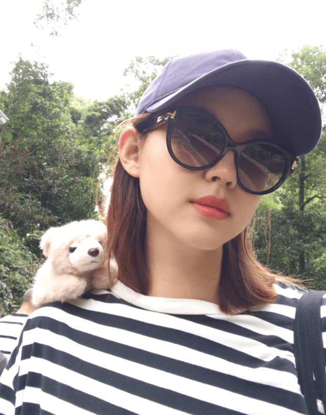 张梓琳先是晒出一张自拍照,身着黑白条纹上衣戴着棒球帽出镜的张梓琳,一眼看去像是二十出头的少女,皮肤白净透亮又Q弹,实在令人羡慕。