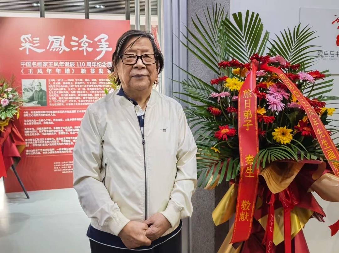 作为一名旅日画家,秦生的作品融合了中日绘画的特色。近日曝光的照片中,他以“旅日画家弟子”身份向中国名画家王凤年献上花篮。虽面容显老,但依旧神采奕奕。