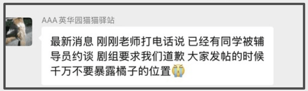 包括校内的猫猫驿站工作人员也证实,学生发发帖之后被辅导员约谈,剧组在正式道歉之前,要求学生们向剧组道歉,学生们只是质疑剧组的行为,明明学校有限速标识,但是司机却在学校里开快车,学生们喊话剧组要说法,却被剧组如此强硬对待。