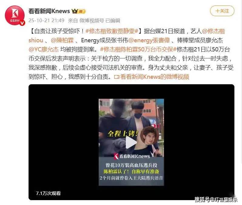 近日,一则关于艺人修杰楷的消息引起了社会的热议和热议。修杰楷因涉嫌伪造病历逃避兵役,被警方拘留并交保,随后他在社交媒体上发布了一篇长文道歉,承认自己的错误,并表示将全力配合检方的调查。这一事件的发生,不仅让修杰楷本人和他的家人受到了一定的影响,也引发了公众对于明星特权、法律执行以及家庭保护等话题的讨论。