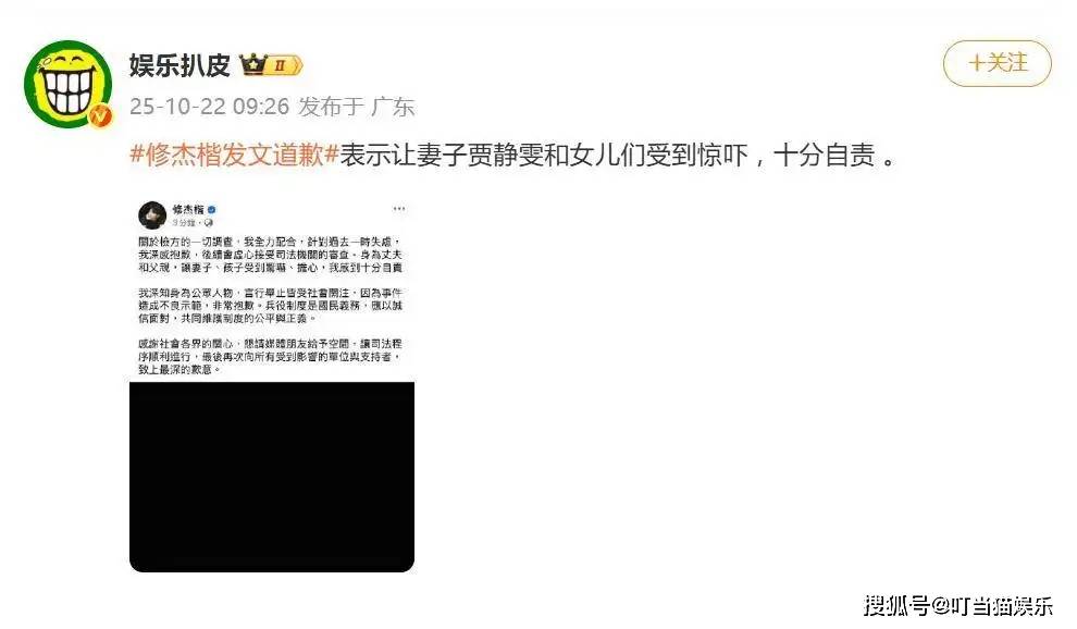 值得一提的是,修杰楷在道歉文中还特别提到了自己的家人,他表示自己非常自责,因为此次事件的发生,给妻子贾静雯和两个年幼女儿带来了很大的惊吓,他希望能够尽快解决这个问题,给家人一个安心的生活环境。