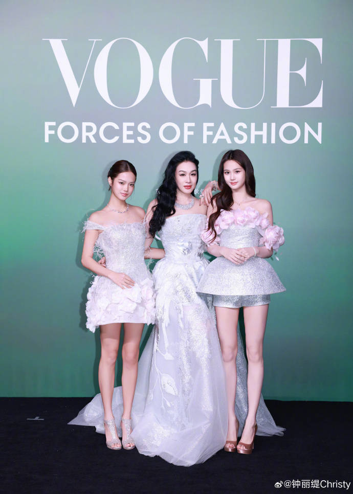 10月23日的VOGUE时尚盛典红毯,被钟丽缇和她的两位女儿彻底“霸屏”。55岁的钟丽缇带着17岁的Jaden(张思捷)和15岁的考拉(张凯琳)一同亮相,三人全程牵手互动的温馨画面,