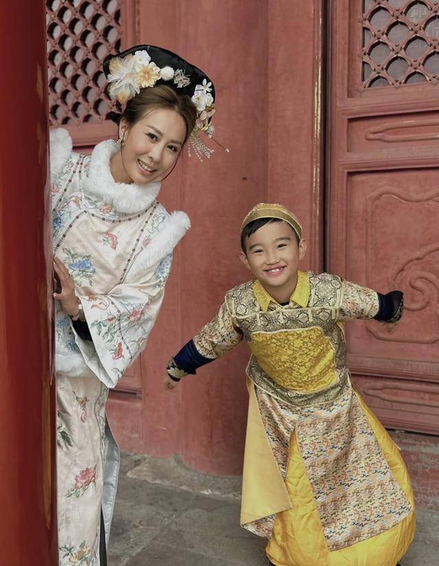 曹敏莉的二儿子则是和弟弟的造型不同,他穿着一身侍卫装,身高接近妈妈的他此前也是刚过完十二岁生日,看到儿子不知不觉中已经就快变成小大人,相信作为妈妈的曹敏莉也是感慨颇深。