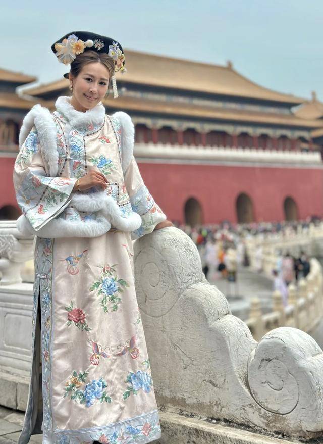 看得出曹敏莉和几个孩子也是被故宫厚重的历史感所吸引,她们和很多游客一样,专门租借了清朝的服装,希望沉浸式的做一回古代人。