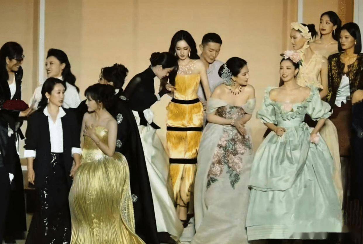 不过,有现场参与者透露,除了刘冲两侧的刘亦菲、杨幂外,其余位置都是‘自由选择’的。此外,网友们也是意见不一,支持者力挺钟楚曦的复古油画风造型完美契合盛典主题,镶嵌着水晶的1987年Nina Ricci古董礼服在镜头前流光溢彩,与刘亦菲一同置于视觉中心,恰恰能彰显“百花齐放”的时尚理念。对于大裙摆阻碍动线的批评,粉丝反击称“艺术造型本该拥有展示空间”。