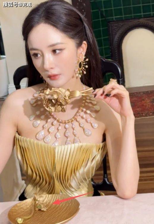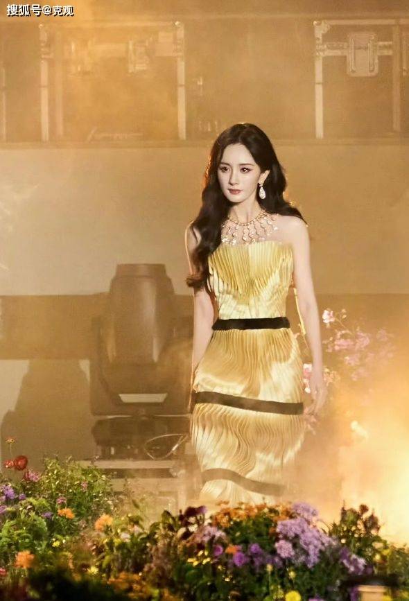 杨幂的第二套内场造型立马华丽变身,一袭金色礼裙配大卷发摇曳生姿,网友发现杨幂搭配的珠宝非常之大,珠宝和礼裙、背景的颜色都完全契合,显然是花了不少心思的。