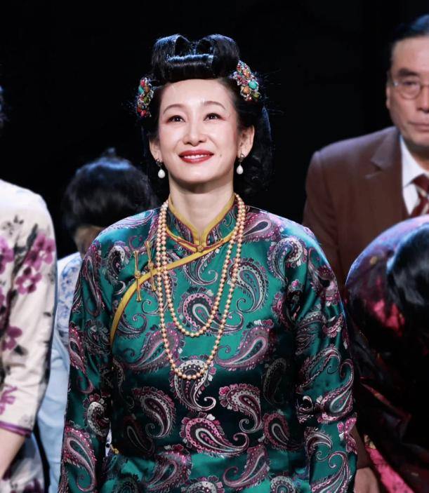 可能跟她的工作有关,她为了演话剧《四世同堂》里的大赤包,硬是暴瘦15斤,每天穿着百斤戏服排练,估计是累着了。