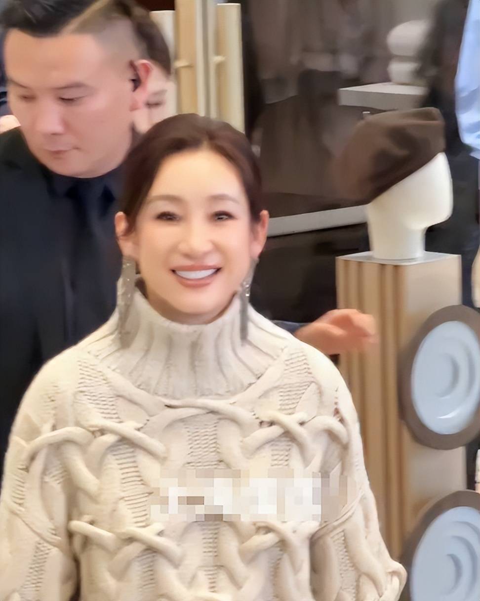 她穿米白色高领毛衣配银耳环,按理说该是优雅知性风,可高清镜头下苹果肌塌得明显,嘴角的细纹比毛衣纹理还清晰。