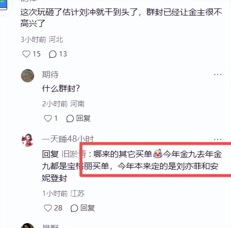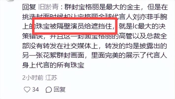 还有网友提前替刘冲捏了把汗,直言他这次可别玩砸了,上次的群封本就不那么让人满意,不慎遮挡了刘亦菲手上的珠宝。