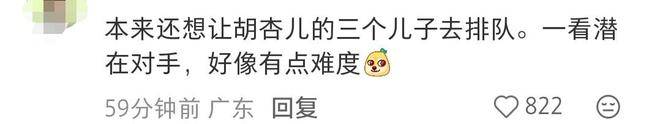 “本来还想让胡杏儿的三个儿子去排队。一看潜在对手,好像有点难度。”