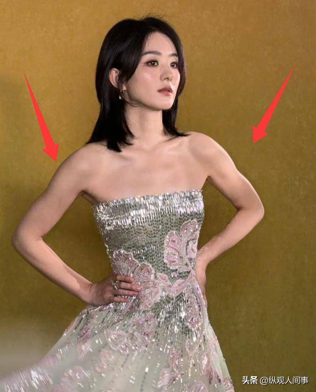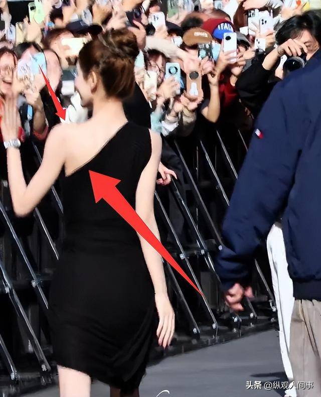 从侧面看,后背的蝴蝶骨凸得特别明显,连礼服的布料都贴在骨头上,看着有点硌人。