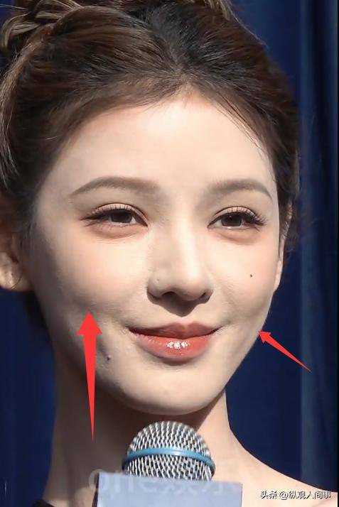 近距离的镜头小,她的苹果肌饱满但不臃肿,笑起来的时候眼下有淡淡的卧蚕,看着特别亲切。