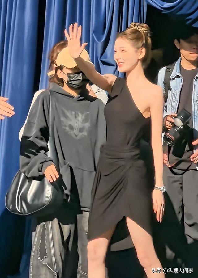 生图里她抬手跟媒体打招呼,小臂细得跟筷子似的,手腕上的浪琴新表反而显得笨重。