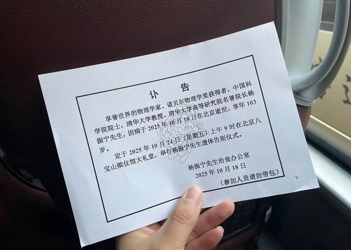 也有网友发出了收到的讣告,上面详细记录着杨先生告别仪式的举行地点还有时间。并且叮嘱参加人员请勿带包。
