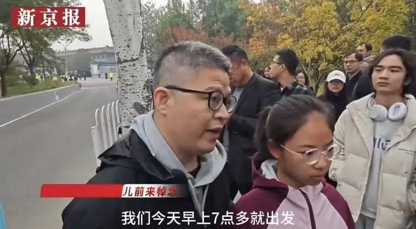 有一位父亲,带着女儿早早地就来了这对父女的爸爸是清华校友,他也是专程带着女儿来送别杨振宁先生的。
