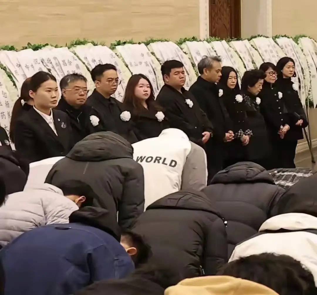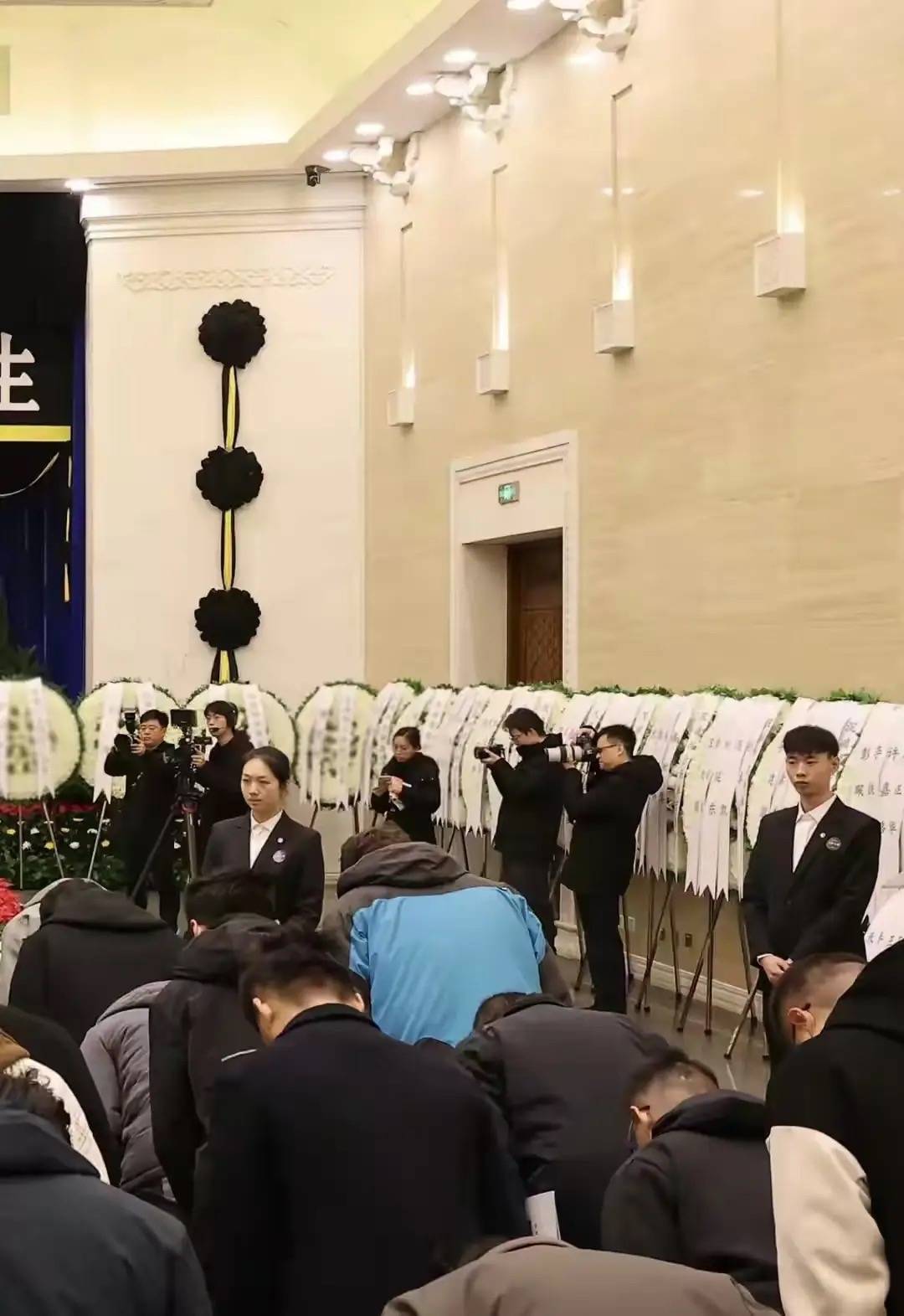 每个人都神情肃穆、特别的悲伤。家人同意穿黑色衣服、胸前别着白色白花。翁帆还剪了短发,整个人非常的憔悴。